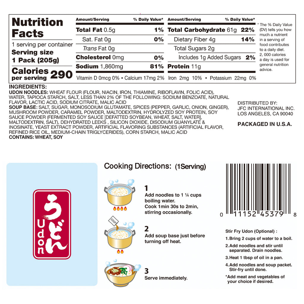 • Japanese style pre-cooked noodles with soup base inclouted, can be eaten as soup udon or stir-fry udon. Add vegetables and protein for an even better meal.